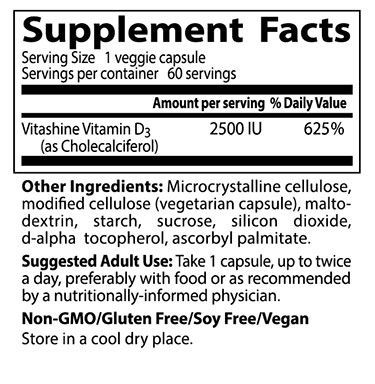 Vegan D3 2500IU / 60 Vcaps.