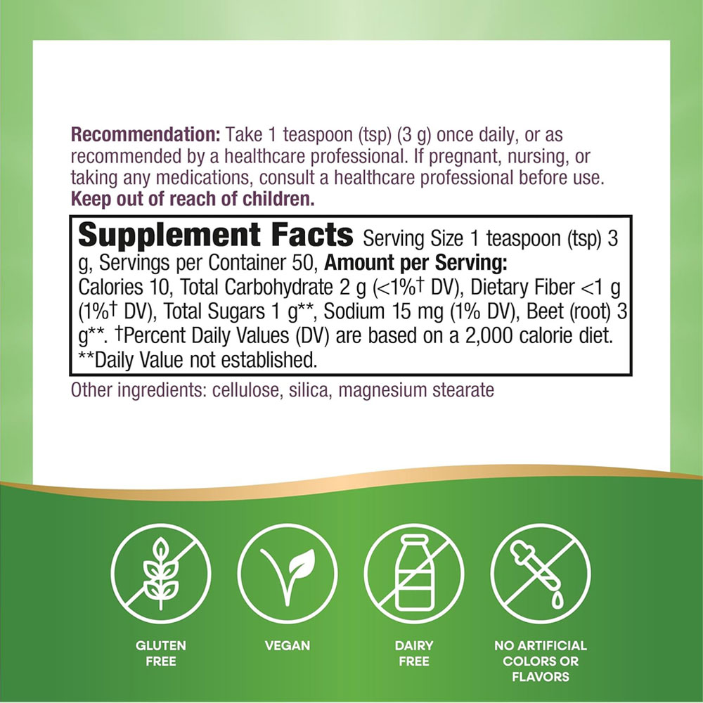 Proprietăți și caracteristici ale Beet Root Powder de la Nature’s Way: