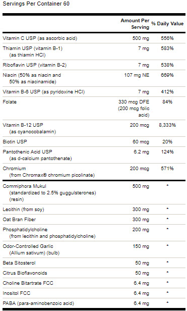 • Gugulipid, lecitină, fibră de tărâțe de ovăz și mai mult în fiecare comprimat