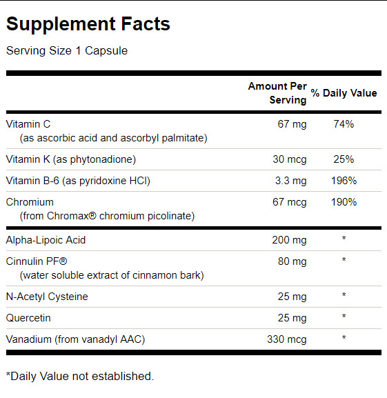 Dați-vă corpul și mâna de ajutor pentru a susține nivelurile de glucoză sănătoase cu Swanson Blood Sugar Essentials. Cea mai recentă descoperire în întreținerea metabolică, această formulă specială combină un extract puternic de scorțișoară cu un amestec selectiv de substanțe nutritive sinergice pentru a ajuta corpul să utilizeze eficient alimentarea cu insulină. La baza formulării se află un compus cunoscut ca MHCP (polimer de metilhidroxichalcone), un constituent unic de scorțișoară care ajută la producerea de glicogen pentru a susține zahărul din sânge. Blood Sugar Essentials combină un extract de scorțișoară cu potențial garantat cu picolinat de crom, acid alfa lipoic, quercetin, N-acetil cisteină de vanadiu și altele pentru a ajuta la menținerea proceselor metabolice sănătoase.