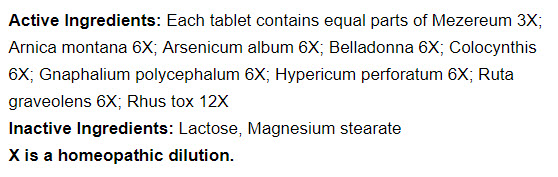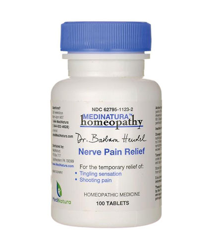 MediNatura ™ Nerve Pain Relief a fost formulată de Dr. Barbara Hendel pentru a oferi o ameliorare temporară a amorțeală, senzații de furnicături și durere asociată cu dureri nervoase. Formula foloseste Arnica montana radix 6X, Arsenicum album 6X, Belladonna 6X, Colocynthis 6X, Gnaphalium polycephalum 6X, Hypericum perforatum 6X, Mezereum 3X, Rhus toxicodendron 12X si Ruta graveolens 6X.