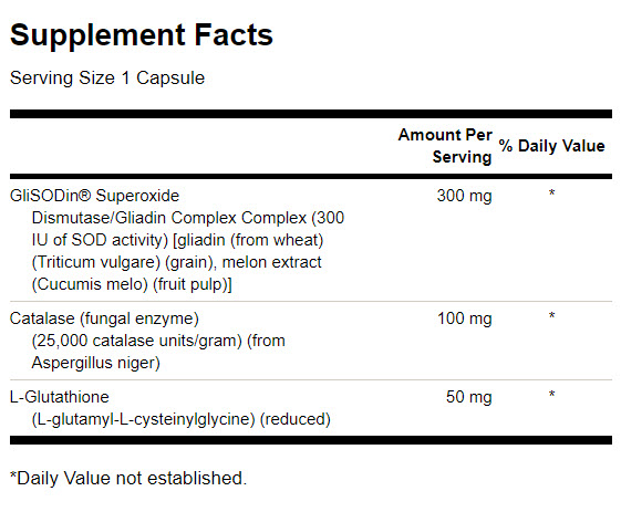 NOTĂ: GliSODin® este prima formă orală eficientă, sursă de sursă de superoxid dismutază (SOD). Aceasta se face printr-un proces proprietar care integrează SOD cu gliadină pentru al proteja de degradarea în tractul digestiv.