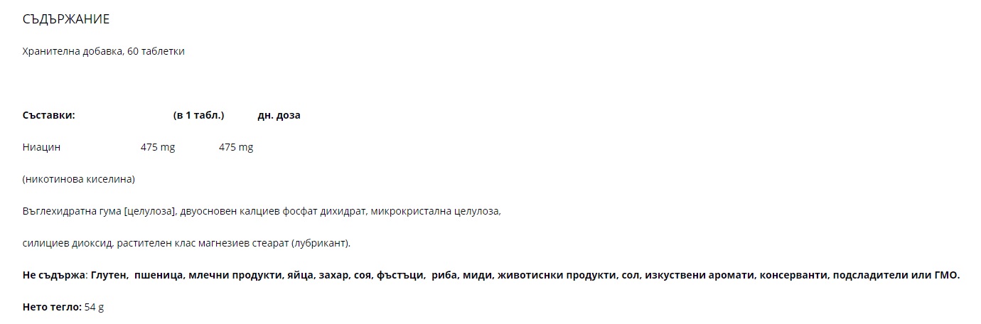 Niacin 475mg / 60 Tabs