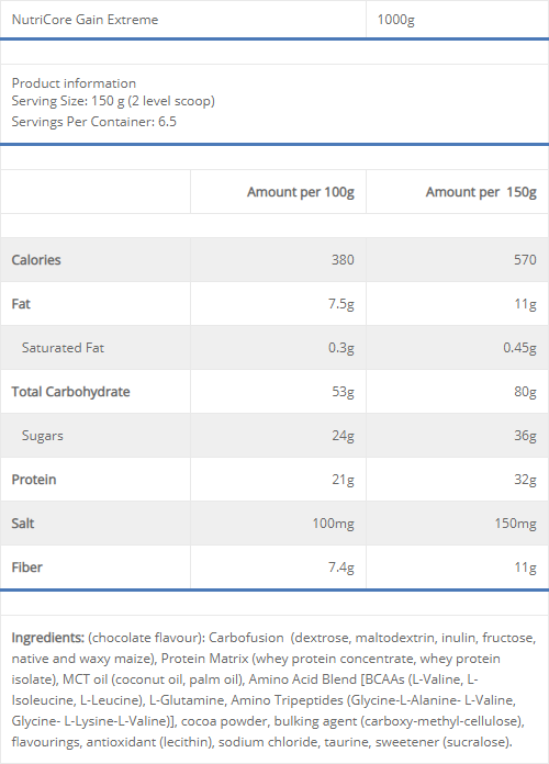 Aceste date se referă la versiunile aromate, versiunea fără aromă conține 4,8 g BCAA pe porție.