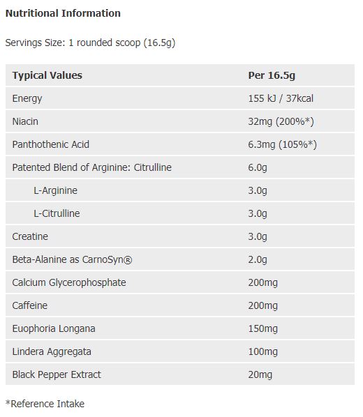 Amestecați 1 lingură cu 5-6 oz de apă și consumați 15-30 de minute înainte de antrenament. Pentru a sprijini hidratarea, bea multă apă pe tot parcursul antrenamentului.