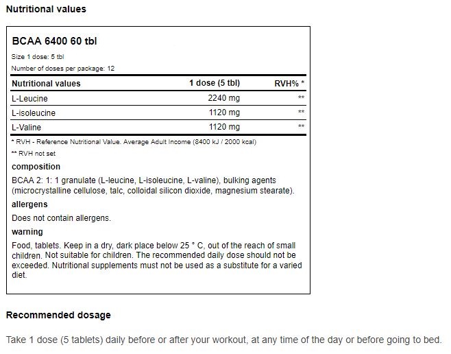 Ingrediente: BCAA - leucină, izoleucină, valină