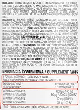 Beneficii cheie ale produsului ADEK / Vitamin A + D + E + K: