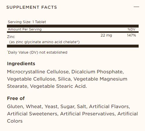 SOLGAR Zinc Chelated 22 mg / 100 Tabs