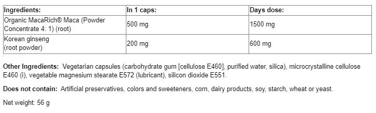 MacaRich® Organic Maca Concentrate 4: 1 / 90 Caps