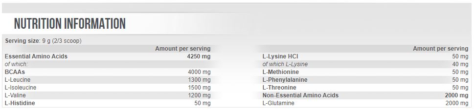 EAA + Glutamine este formulat pentru a imbunatati sanatatea generala prin furnizarea de aminoacizi esentiali pe care organismul nu ii poate produce singur. Acesti aminoacizi sunt vitali pentru procesele de recuperare si crestere musculara, ajutandu-va sa atingeti obiectivele de fitness si wellness mai rapid si mai eficient. Glutamina inclusa in formula acestui supliment contribuie la refacerea depozitelor de glicogen din muschi, reducand astfel timpul necesar recuperarii dupa efort si diminuand oboseala musculara.