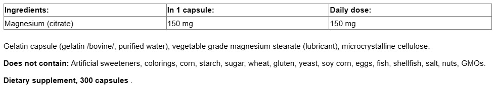 Magnesium Citrate 150 mg High Absorption / 300 Caps