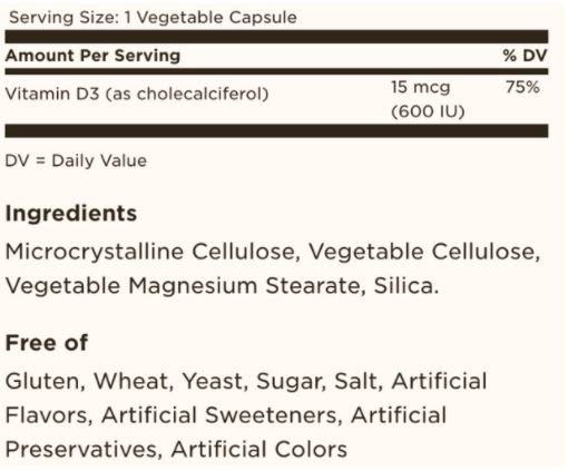 Vitamin D3 600 IU / 60 Vcaps