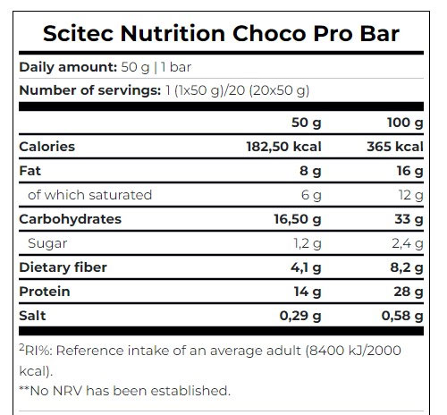 Choco Pro Bar de la SCITEC este un supliment alimentar delicios, conceput pentru a oferi un aport optim de proteine in orice moment al zilei. Aceasta batoana proteica este perfecta pentru sportivi si persoanele active care doresc sa isi sustina masa musculara si sa isi imbunatateasca performanta fizica. Cu un gust de ciocolata irezistibil si o textura crocanta, Choco Pro Bar nu doar ca este nutritiva, dar ofera si o experienta gustativa deosebita.
