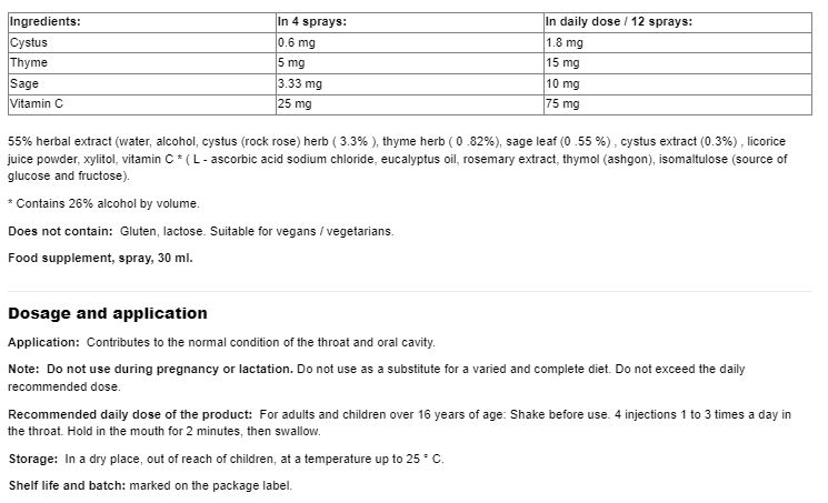 Throat Spray with Herbs and Vitamin C / 30 ml