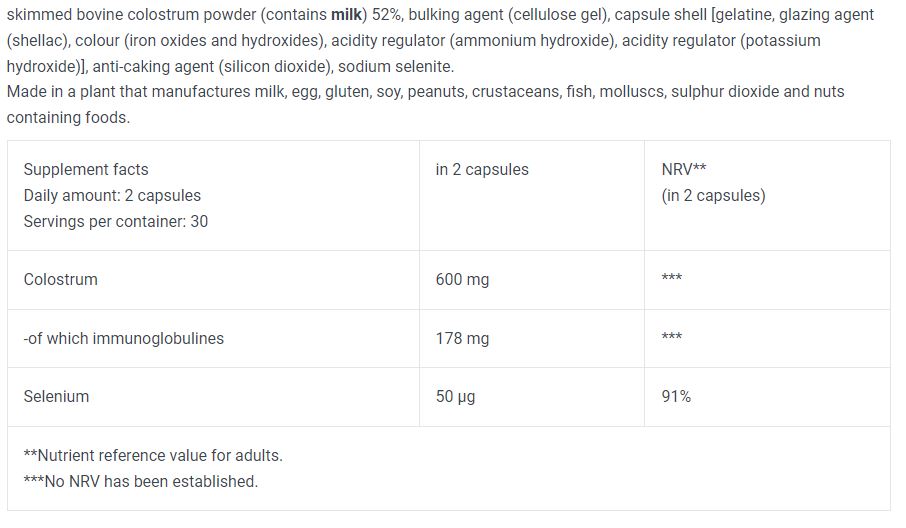 Colostrum imbunatateste sanatatea generala prin furnizarea de anticorpi si factori de crestere esentiali pentru functionarea optima a sistemului imunitar. Principalul beneficiu al Colostrum este capacitatea sa de a intari imunitatea, protejand organismul impotriva infectiilor si bolilor. In organism, colostrumul actioneaza prin stimularea productiei de celule imunitare si prin sustinerea regenerarii celulare, ceea ce ajuta la mentinerea sanatatii generale.