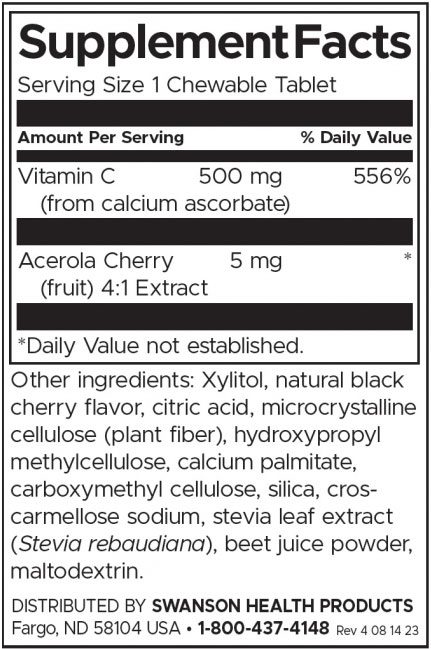 (1.200 Kg./2.643 lbs.)Chewable Vitamin C - Natural Cherry Flavor Sugar-Free / 60 Chews de la Swanson