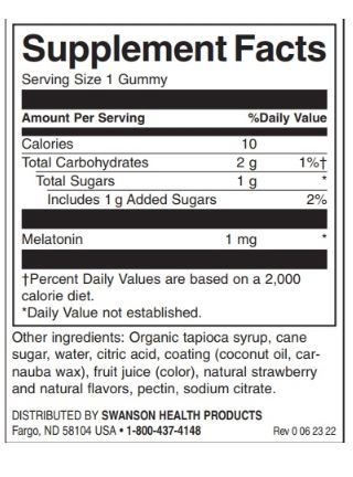 (0.200 Kg./0.441 lbs.)Swanson Kids Melatonin - Strawberry Flavored 1 mg / 60 Gummies