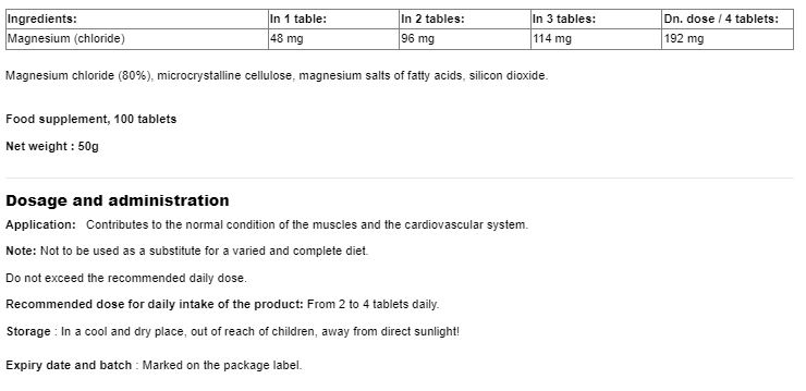 Magnesium (Chloride) / 100 Tabs