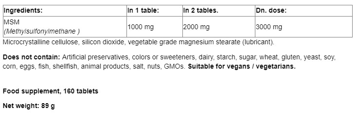MSM 1000 mg / 160 Tabs