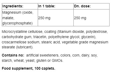 Magnesium 250 mg / 100 Caps