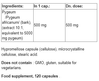 Ingrediente: Extract din scoarță de cireș african (Pygeum)