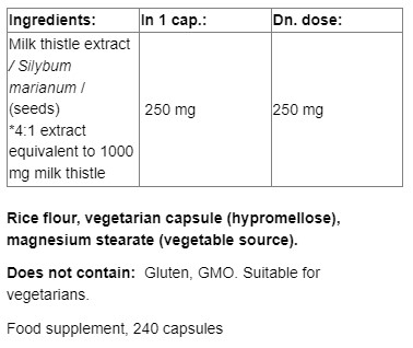Ingredientul activ principal din Milk Thistle de la Nutricost este extractul de armurariu, cunoscut pentru proprietățile sale de susținere a sănătății ficatului. Extractul conține silimarină, un grup de compuși despre care se crede că au efecte antioxidante și antiinflamatorii, esențiale pentru menținerea sănătății ficatului. Silimarina ajută la procesul de detoxifiere a ficatului, contribuind la curățarea și regenerarea acestui organ vital.
