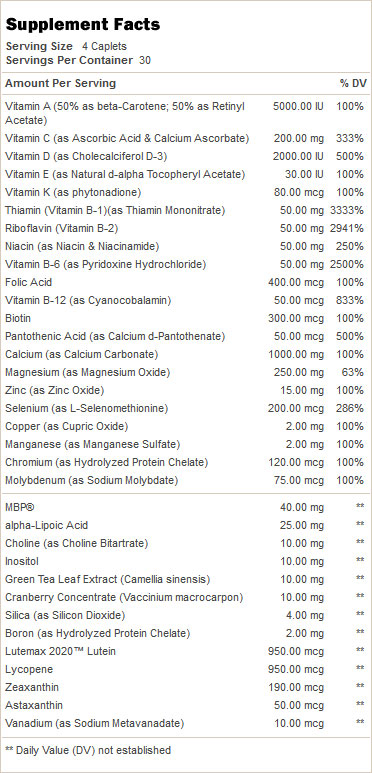 GNC Women's Ultra Mega® Bone Density contine policosanol, care ajuta la mentinerea nivelului de colesterol în limite normale. De asemenea, suplimentul contine luteina, care este un carotenoid care imbunatateste vederea.