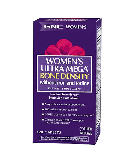 (1.000 Kg./2.203 lbs.)GNC Women's Ultra Mega® Bone Density este un supliment alimentar special produs pentru imbunatatirea sanatatii femeilor . Aceasta formula de multivitamine si minerale sustine cresterea densitatii osoase.