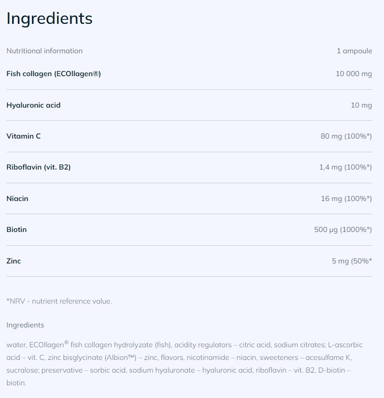 Collagen Shot de la OLIMP imbunatateste sanatatea generala prin furnizarea de colagen hidrolizat intr-o forma lichida, care asigura o absorbtie rapida si eficienta. Colagenul este o proteina structurala esentiala, care reprezinta baza pielii, articulatiilor, parului si unghiilor, asigurand elasticitatea, fermitatea si regenerarea acestora.
