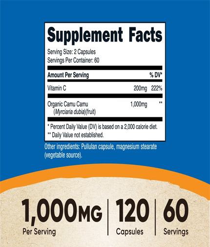 Proprietăți și caracteristici ale Camu Camu de la Nutricost: