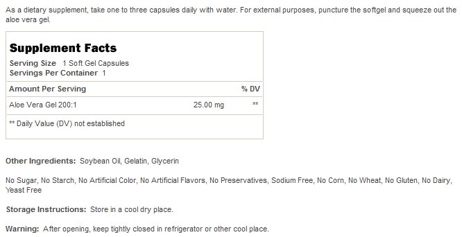 Conținut:gel de aloe vera, ulei de soia, gelatină, glicerină