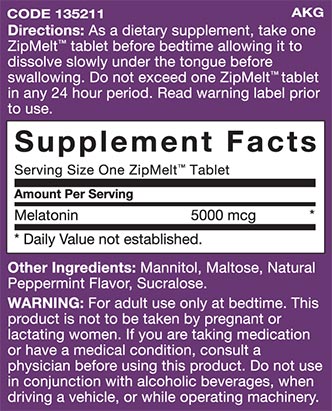 Melatonin Zipmelt 5000 mcg. de la GNCeste un supliment alimentar pe baza de melatonina care sprijina somnul linistit.