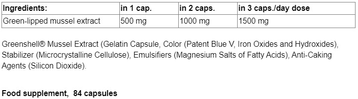 Comentarii despre ARTESANIA AGRICOLA Veridum Green-Lipped Mussel 500 mg / 84 Caps.