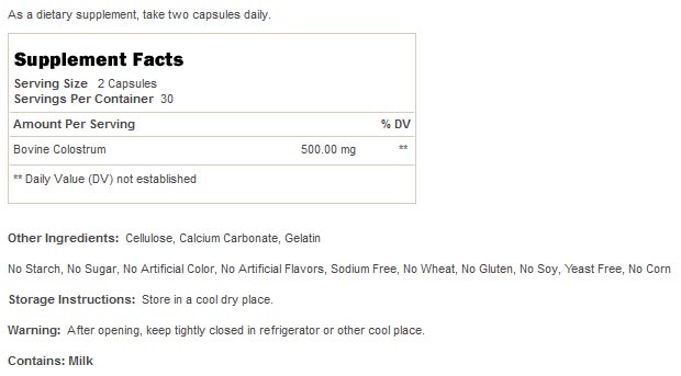 Acest supliment alimentar este potrivit pentru oricine vrea să consolideze organismul și sa stimuleze sistemul imunitar. Colostrul este o substanță lăptoasă, produsa de mamiferele mama la cateva ore de la naștere, înainte de a apărea laptele. Colostrul este prima proteina la mamifere mame cu care se hrănesc copiii lor. Bogat în imunoglobuline IgG, IgM și IgA, polipeptide lactoferină, vitamina B si multe alte proteine active, colostru promoveaza formarea de anti-organisme, și promovează dezvoltarea sistemului imunitar al nou-născutului. Colostrul bovin este structura identică a colostrului uman.