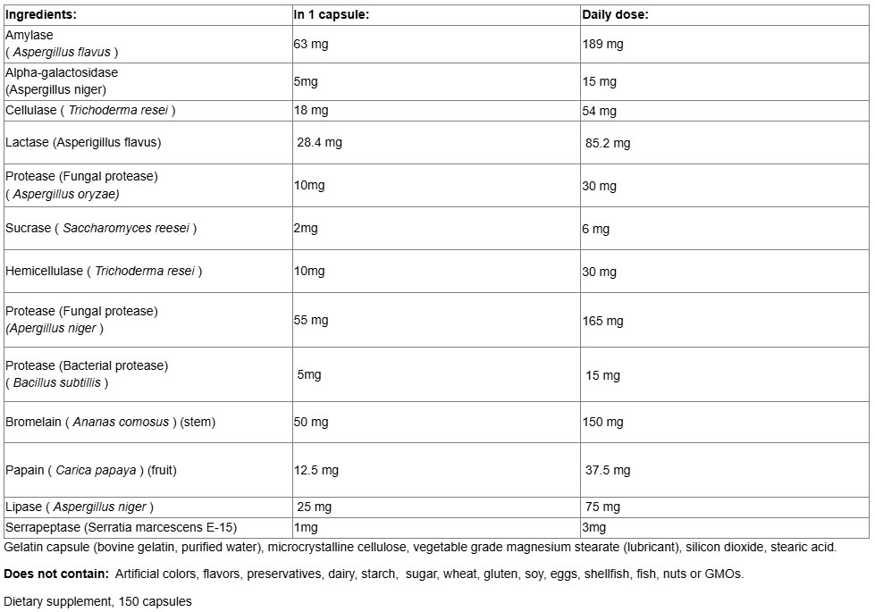 Comentarii despre WEBBER NATURALS Complete Digestive Enzymes / 150 Caps