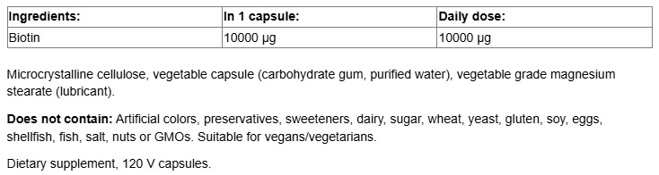 Biotin Extra Strength 10000 mcg / 120 Vcaps