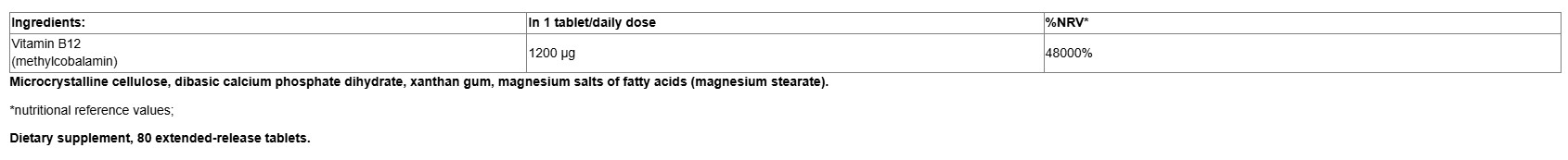 Vitamin B12 (Methylcobalamin) 1200 mcg / 80 Tabs