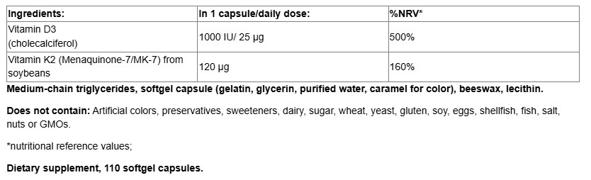 Comentarii despre WEBBER NATURALS Vitamin K2 + D3 / 110 Softgels