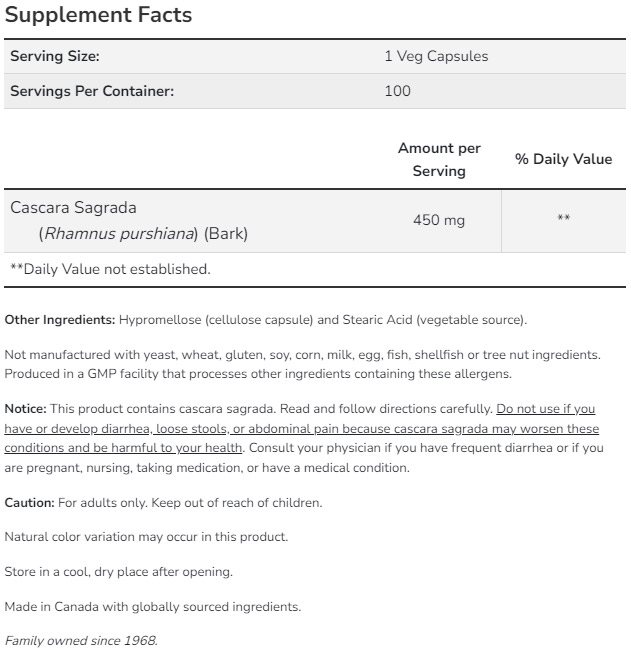 NOW Cascara Sagrada 450 mg / 250 Vcaps