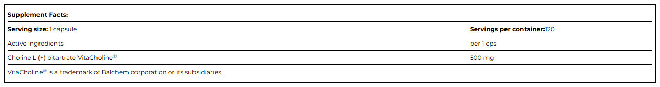Choline Bitartrate VitaCholine® 500 mg / 120 Vcaps