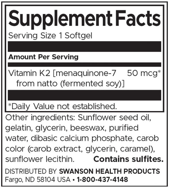 SWANSON Natural K2 50 mcg / 30 Softgels