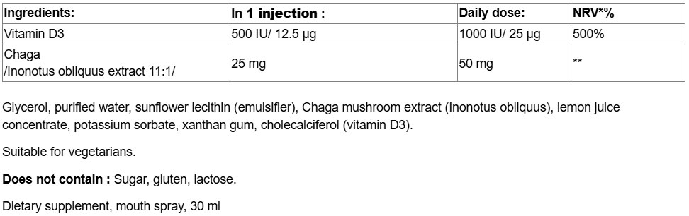 NORDAID Chaga + D3 500 IU Spray / 30 ml