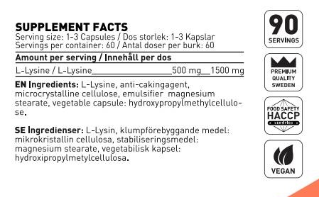 SWEDISH SUPPLEMENTS L-Lysine 500 mg / 90 Caps