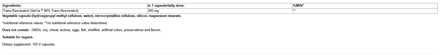 Trans-Resveratrol (98%) Veri-te® 300 mg / 150 Vcaps