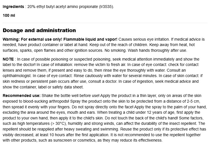 Mosquito And Tick Repellent Spray / 100 ml