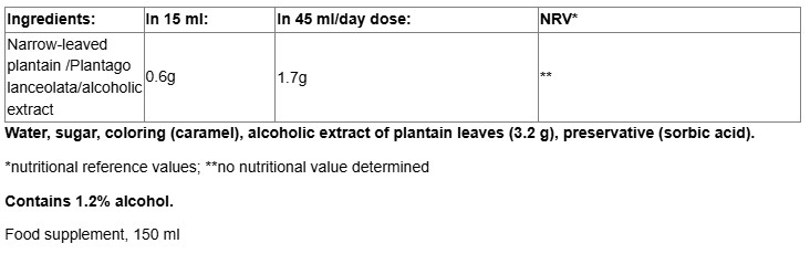 Comentarii despre NATURLAND Narrow-leaved Plantain Syrup / 150 ml