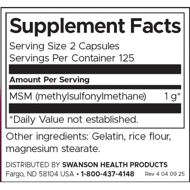 Comentarii despre SWANSON MSM 500 mg / 250 Caps