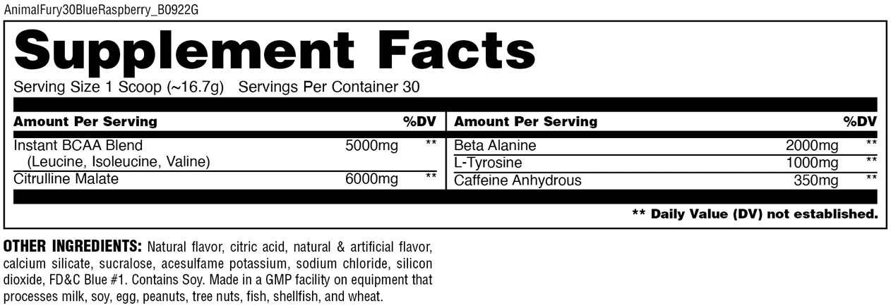 UNIVERSAL ANIMAL FURY Prezentarea produsului Descriere: Supliment alimentar Pila completă pre-antrenament Energie brută Putere pură CarnoSyn - Sintetizator Carnosine ...