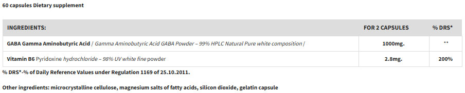 GREWIA GABA 99% + B6 HCL / 60 Caps