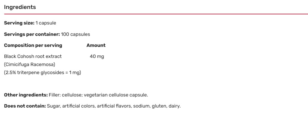 Herbal Plus® Black Cohosh Extract 40mg / 100 Caps